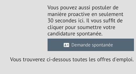 Nous sommes ravis d'offrir aux jeunes diplômés l'opportunité de mettre en valeur leurs compétences et de progresser au sein de notre entreprise. Nous serons heureux de recevoir votre candidature ou de vous entendre par téléphone.